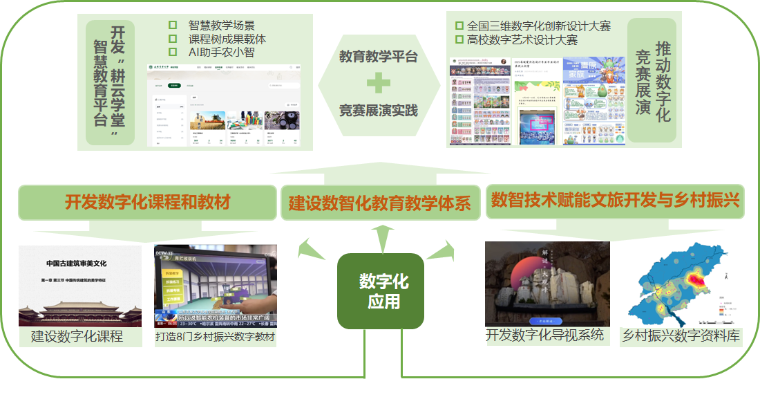 已建《设计美学》《经典山东民歌欣赏与传唱》《建筑美学》《鲜切花日记》等智慧课程,打造《乡村景观概论》《现代园艺概论》等8套乡村振兴系列智慧课程与教材。